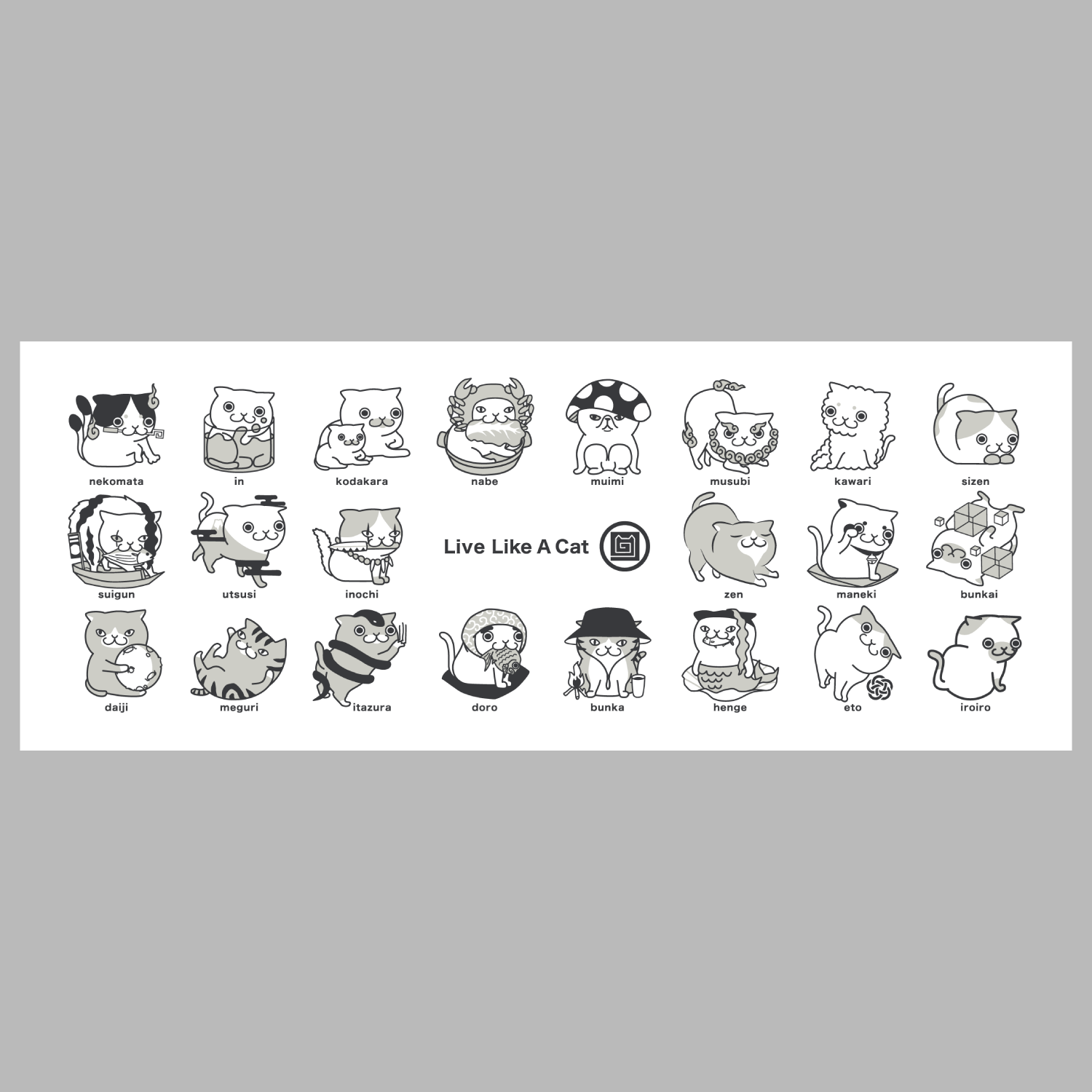 自由で多様なポーズの猫たち。LLACが掲げるコンセプトの一体感を持たせつつ表現しています。