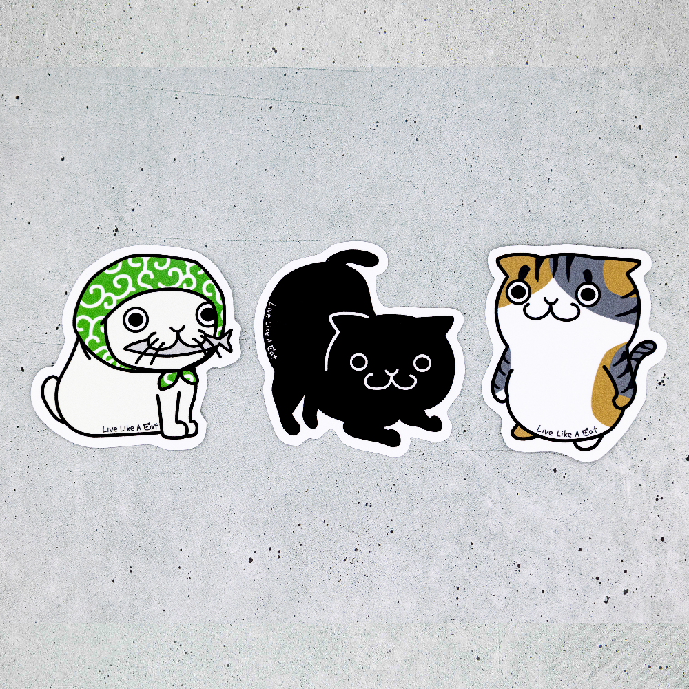 定番デザインの泥棒猫、ポンポン、スタンドの3種類がセットになっています。