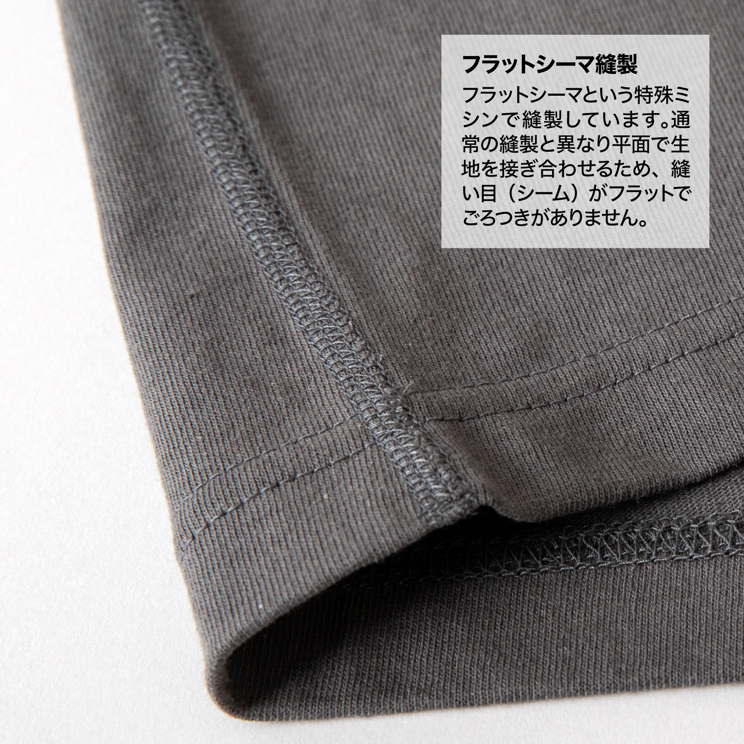 肌に縫い目が当たらないフラットシーマ仕様や、タグレスなどストレスフリーな着心地を追求したこだわりの一着。